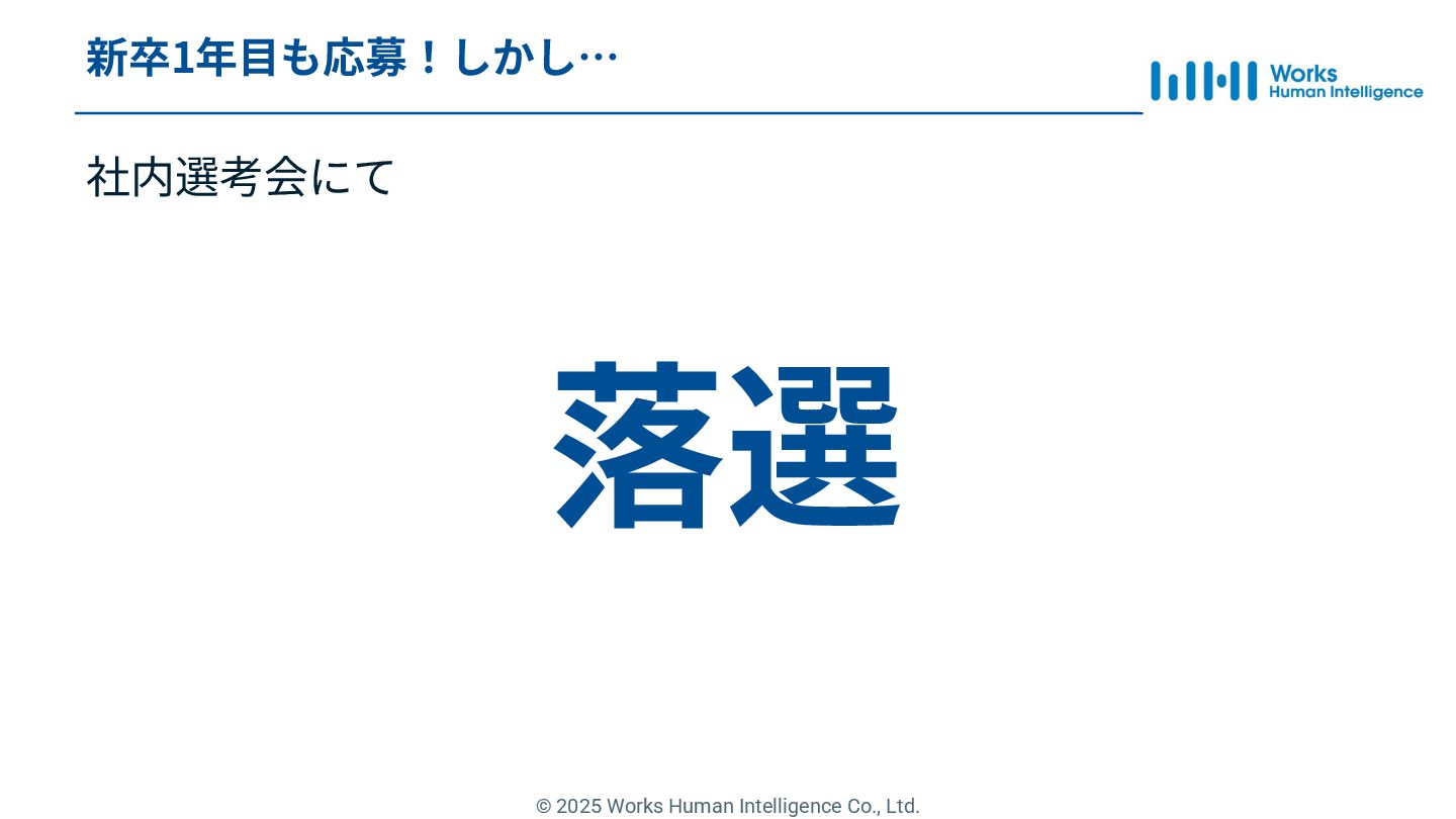 © 2025 Works Human Intelligence Co., Ltd. 新卒1年⽬も応募!しかし… 社内選考会にて 落選