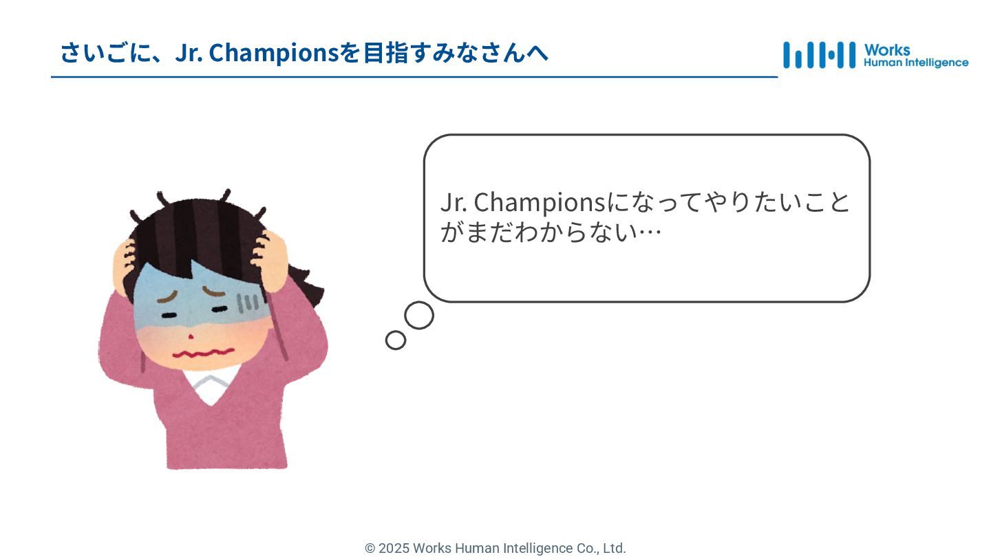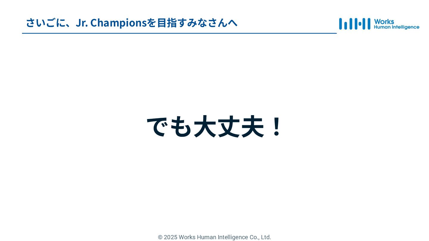 © 2025 Works Human Intelligence Co., Ltd. さいごに、Jr. Championsを⽬指すみなさんへ でも⼤丈夫!