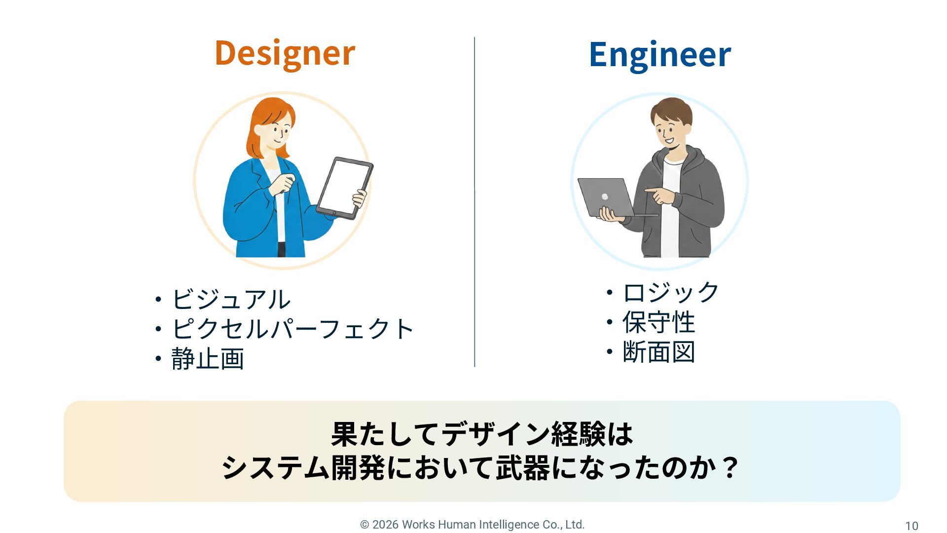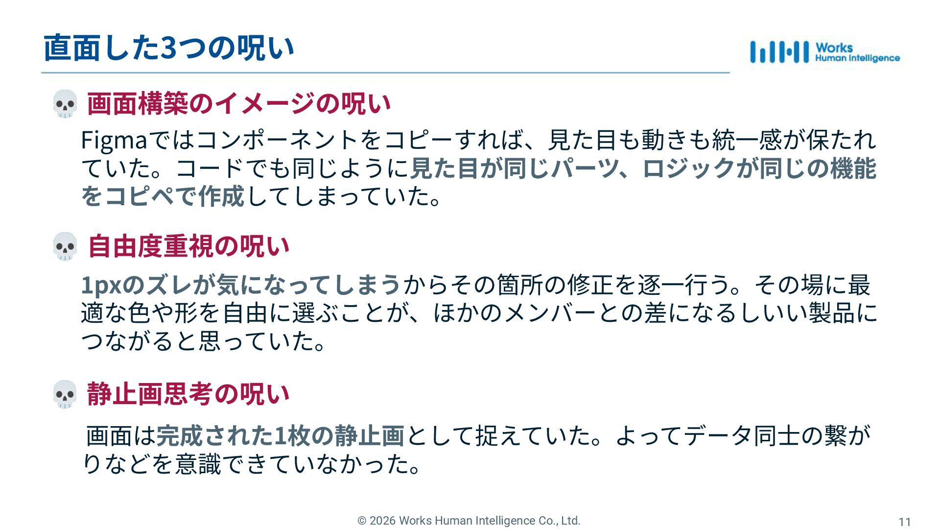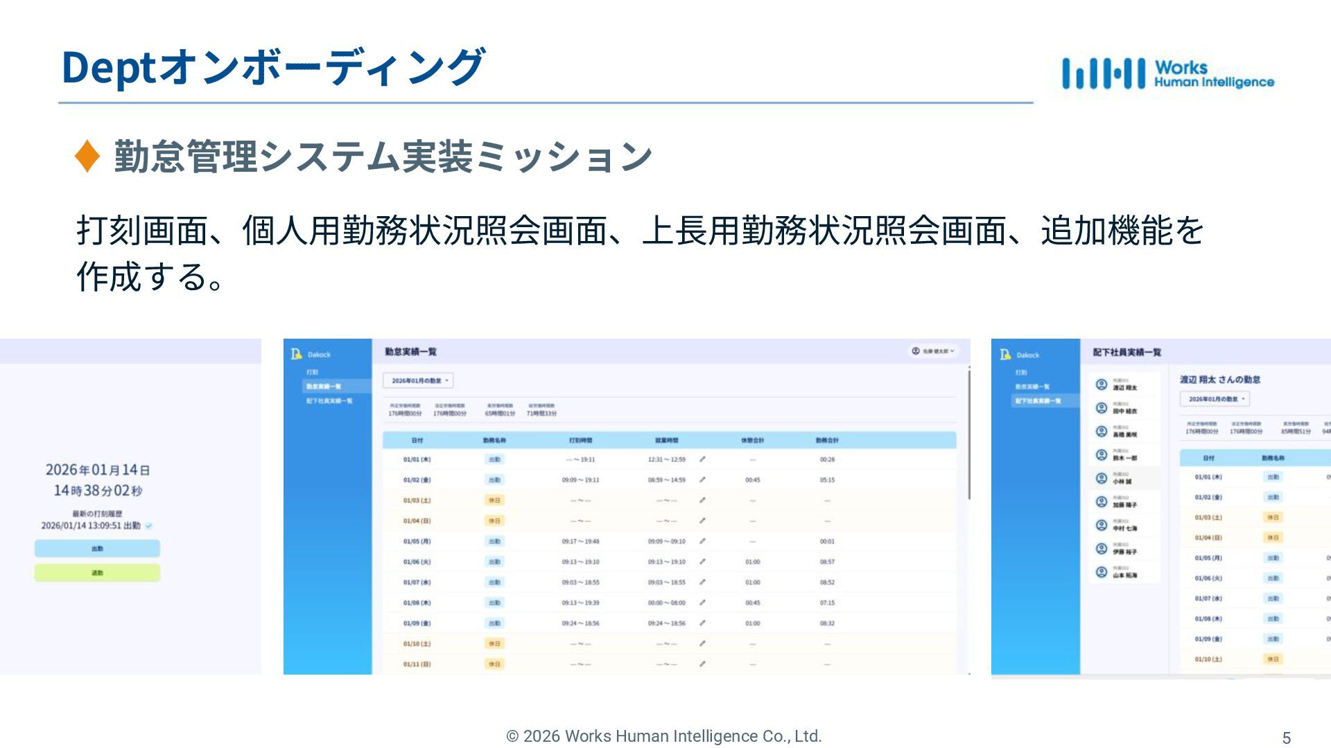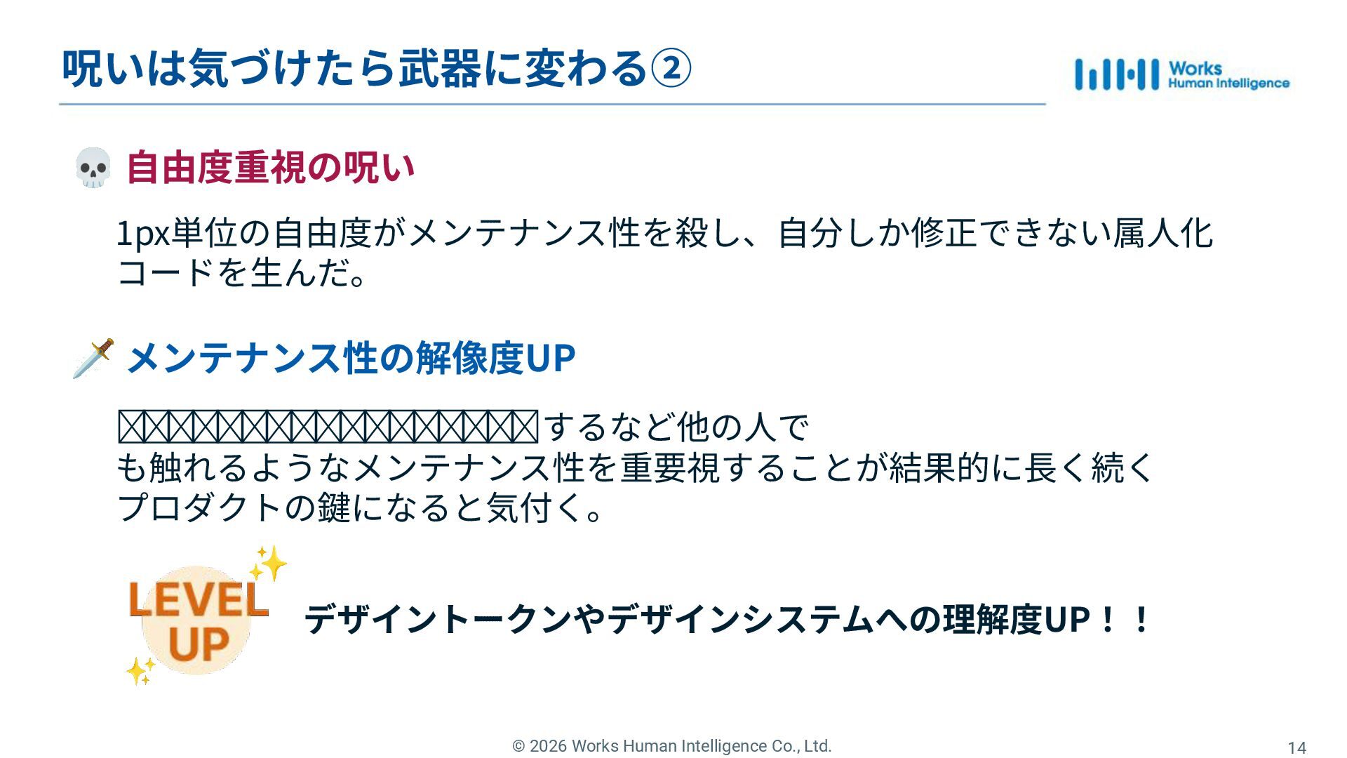 Works Human Intelligenceの新卒1年目のエンジニアたちが、現場で経験した「挑戦」と「失敗」、そしてその過程で手に入れた「学び」を共有するLT会の登壇資料です。