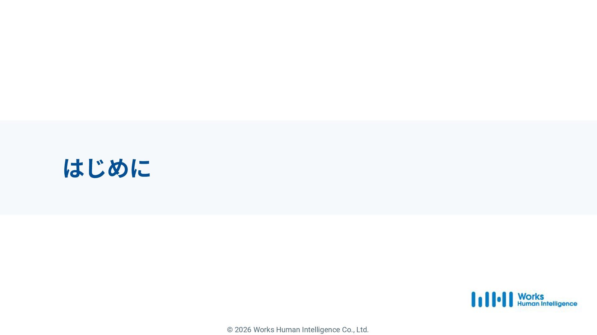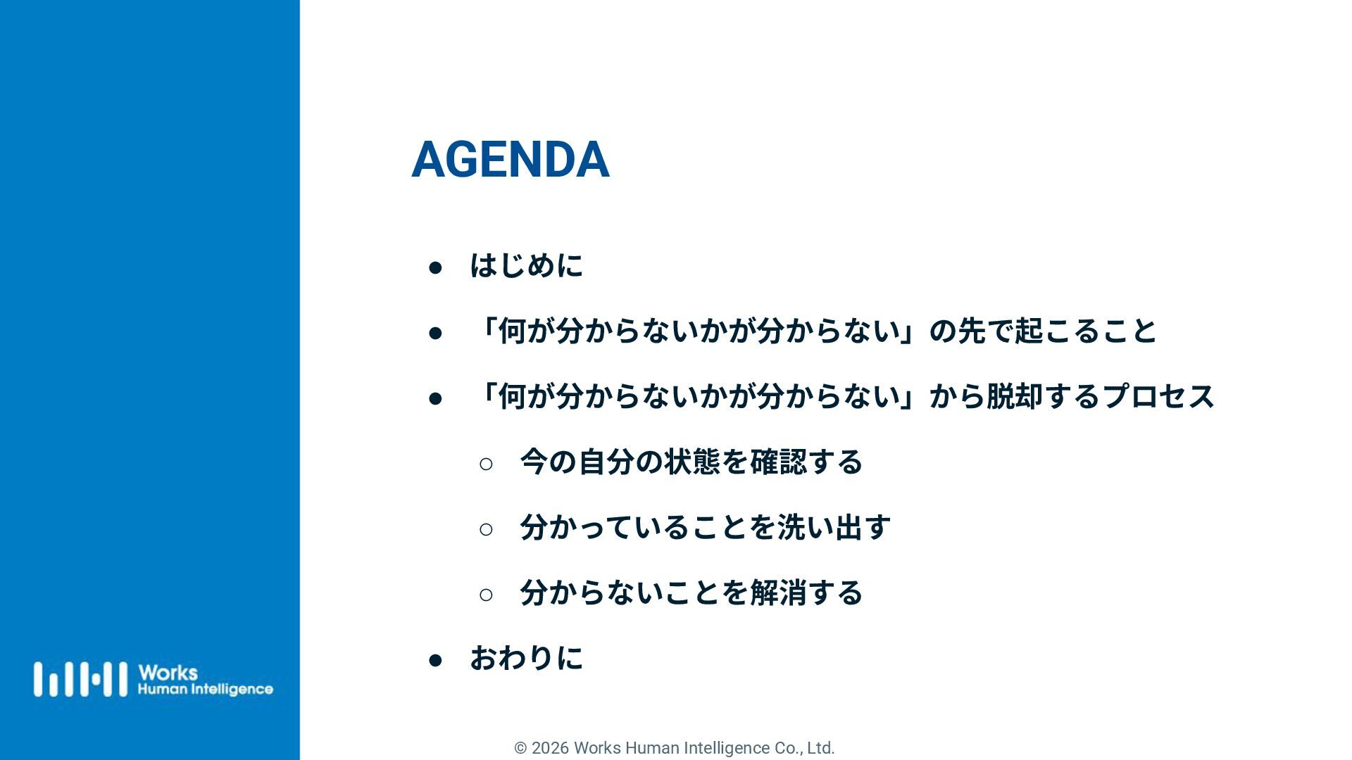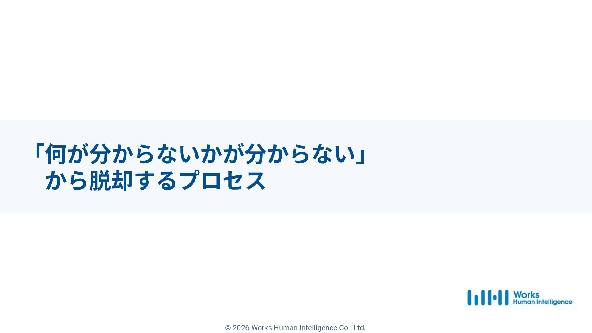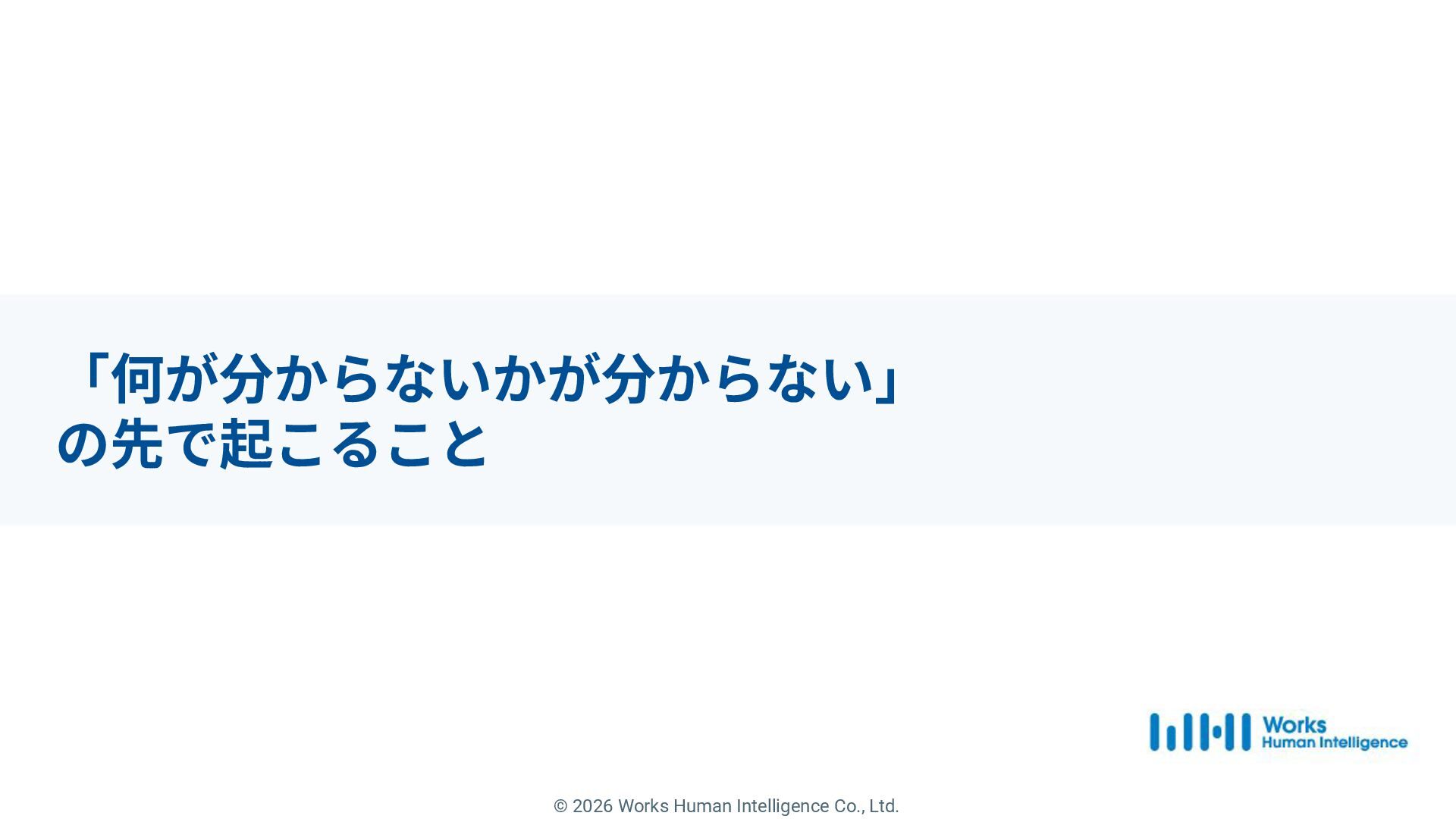 1. © 2026 Works Human Intelligence Co., Ltd. 「何が分からないか」 が分からない から脱却するために。