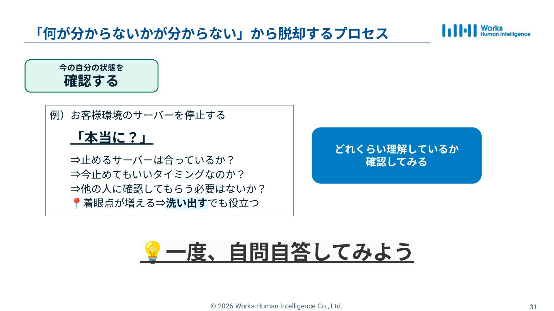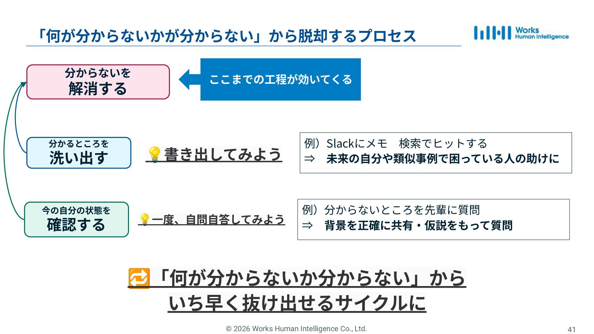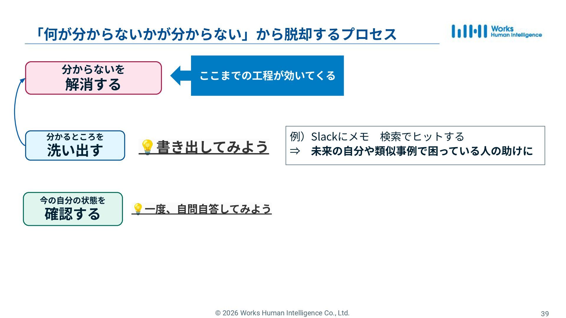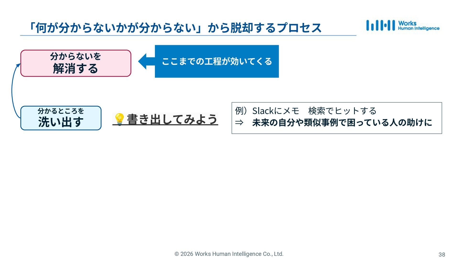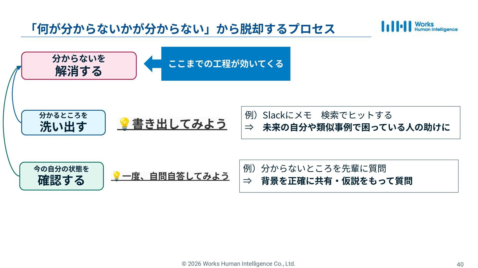 31. © 2026 Works Human Intelligence Co., Ltd. 分からないを 解消する 「何が分からないかが分からない」から脱却するプロセス