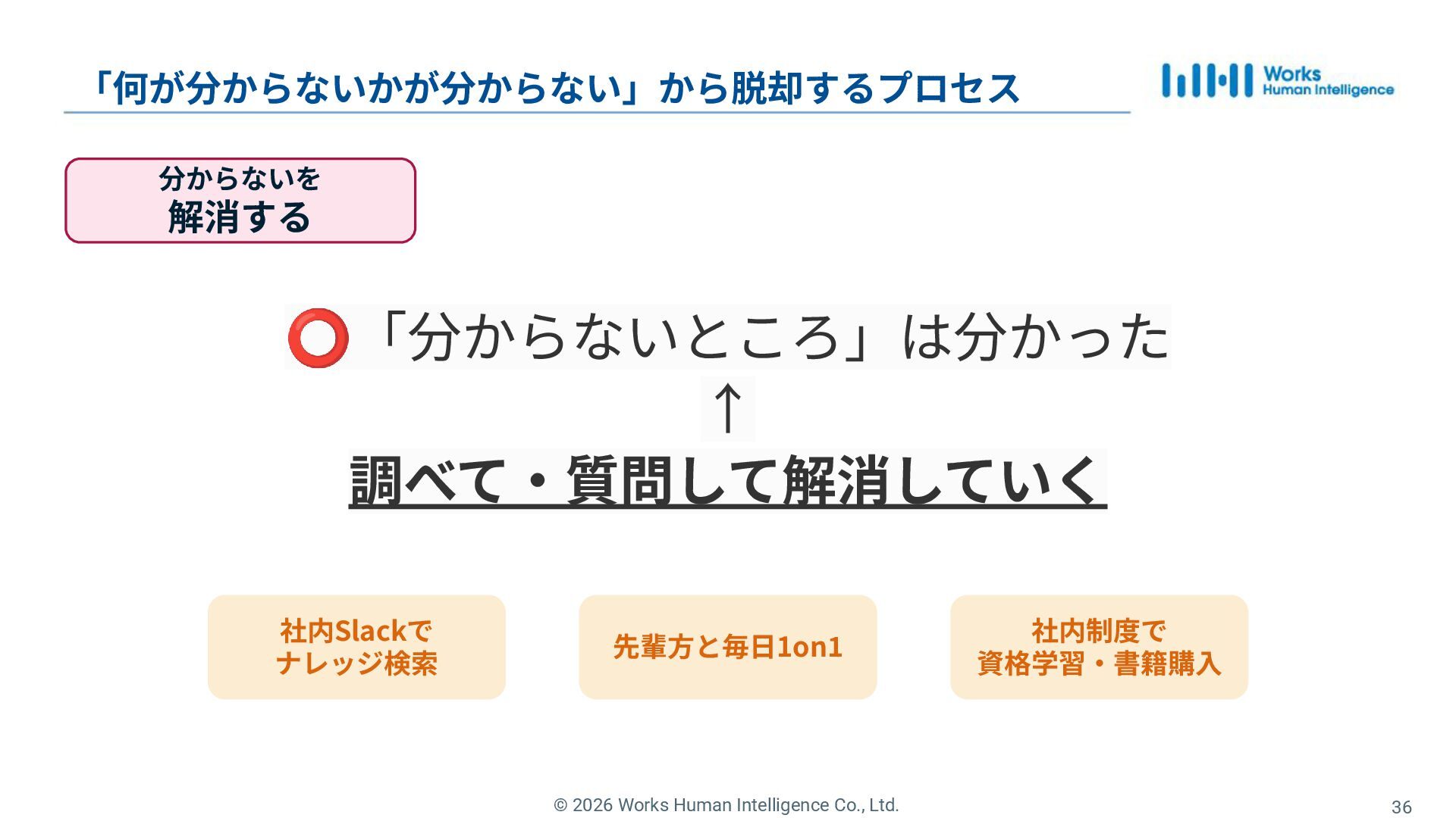 33. © 2026 Works Human Intelligence Co., Ltd. 分からないを 解消する 「何が分からないかが分からない」から脱却するプロセス