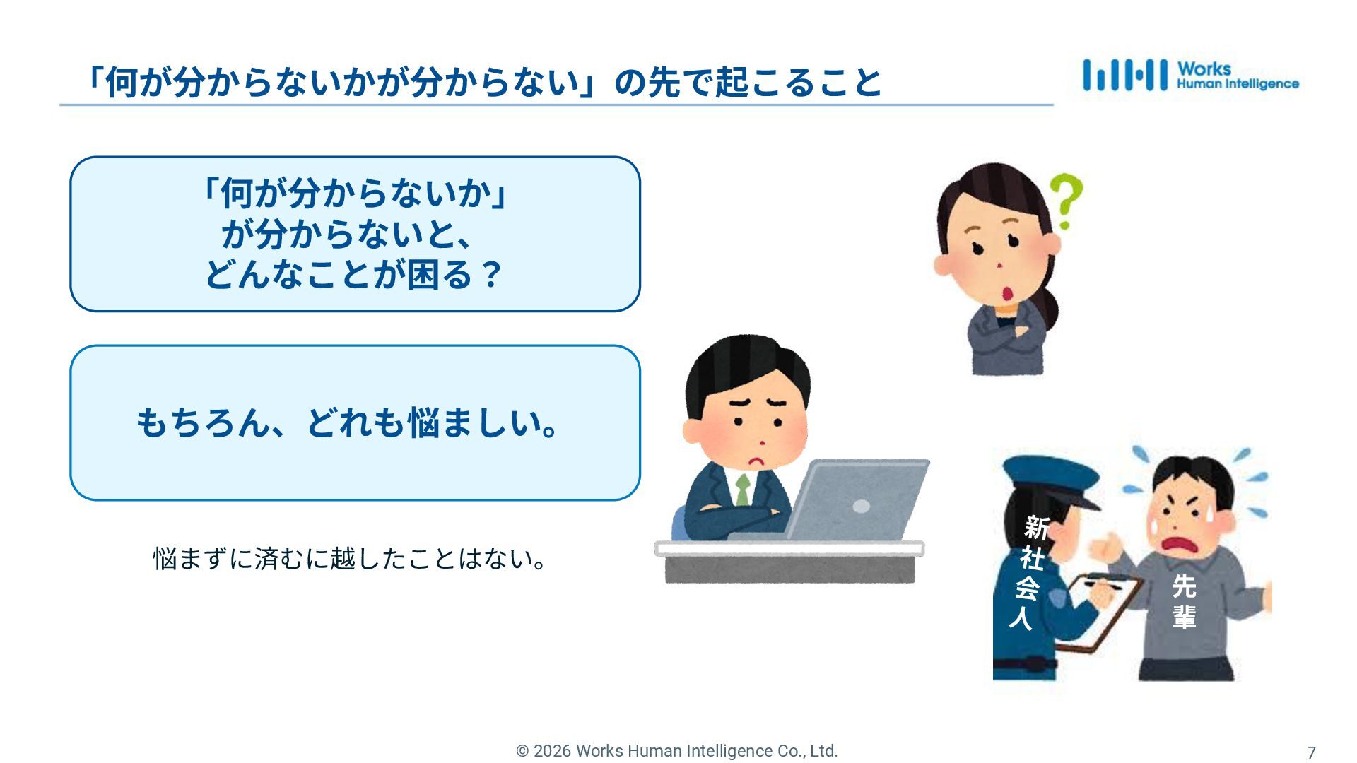 5. © 2026 Works Human Intelligence Co., Ltd. 7 「何が分からないかが分からない」の先で起こること 悩まずに済むに越したことはない。