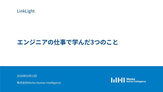 Works Human Intelligenceの新卒1年目のエンジニアたちが、現場で経験した「挑戦」と「失敗」、そしてその過程で手に入れた「学び」を共有するLT会の登壇資料です。