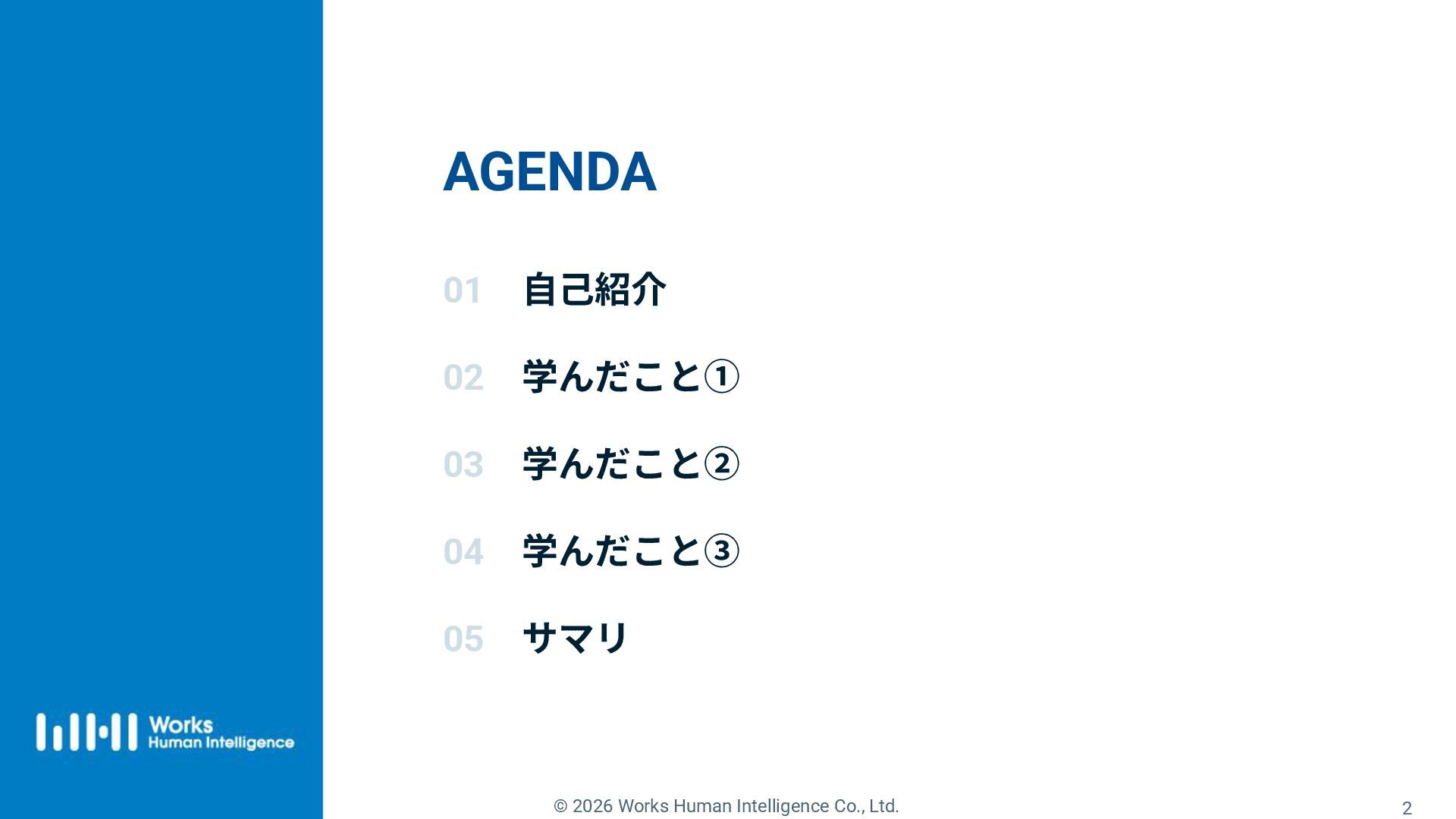 1. © 2026 Works Human Intelligence Co., Ltd. AGENDA 2 01