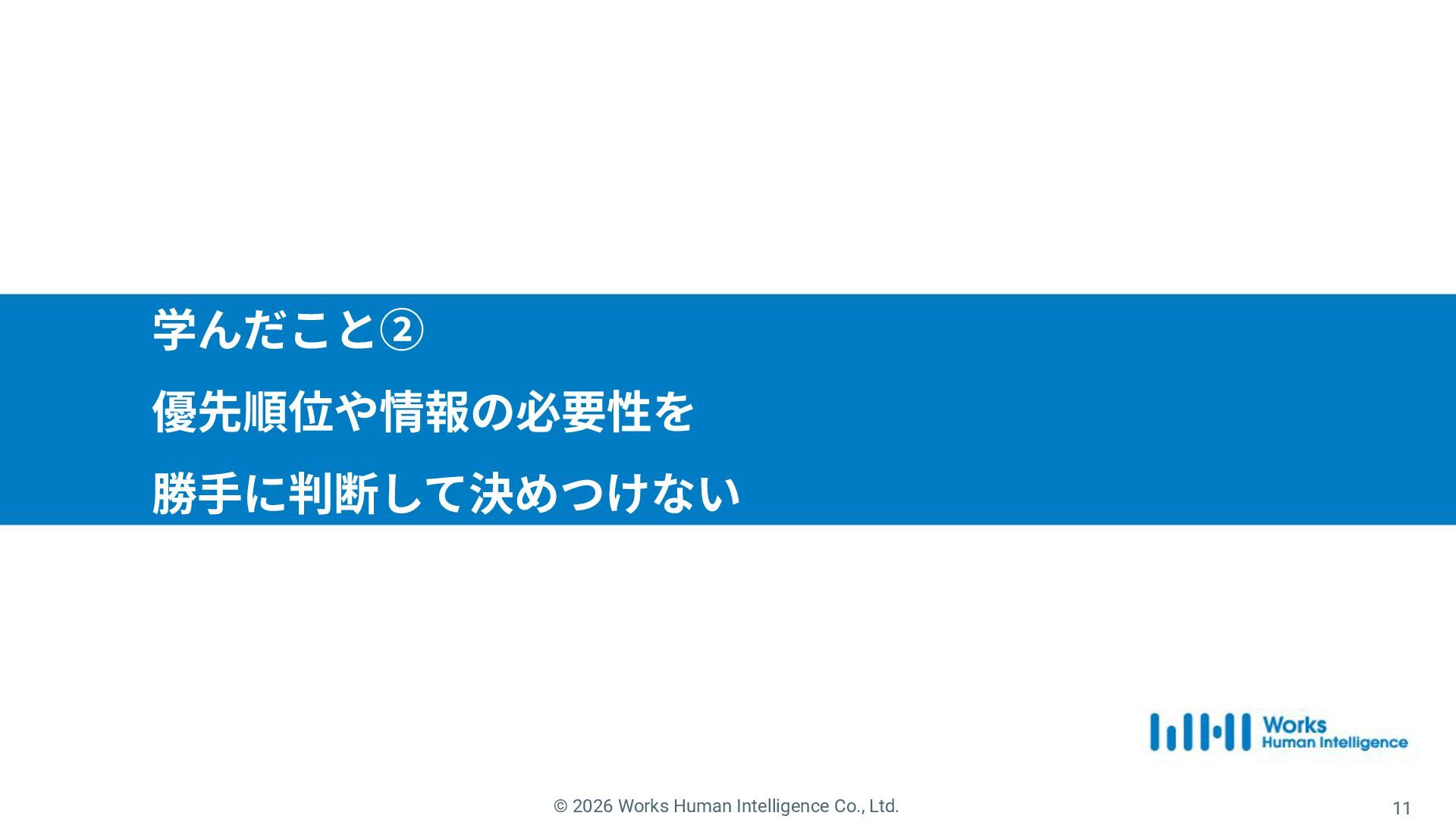 10. © 2026 Works Human Intelligence Co., Ltd. ▪免責事項および権利帰属について ‧本資料に関する⼀切の権利は弊社に帰属します。 ‧本資料には弊社の機密情報が含まれており、書⾯による事前の承諾なしにこれを転載しまたは第三者に開⽰することを禁⽌いたします。