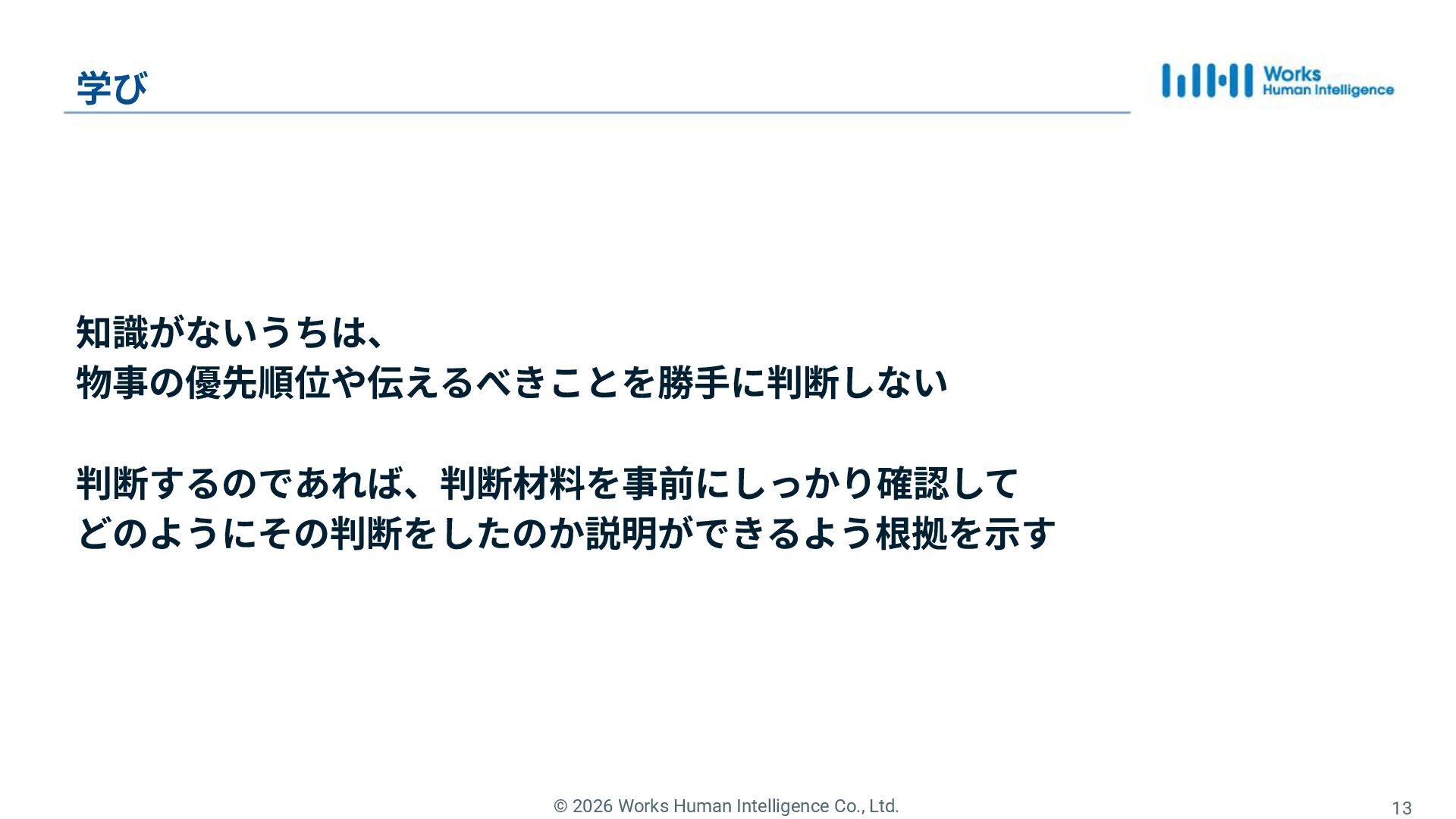 6. © 2026 Works Human Intelligence Co., Ltd. 13 学び 知識がないうちは、