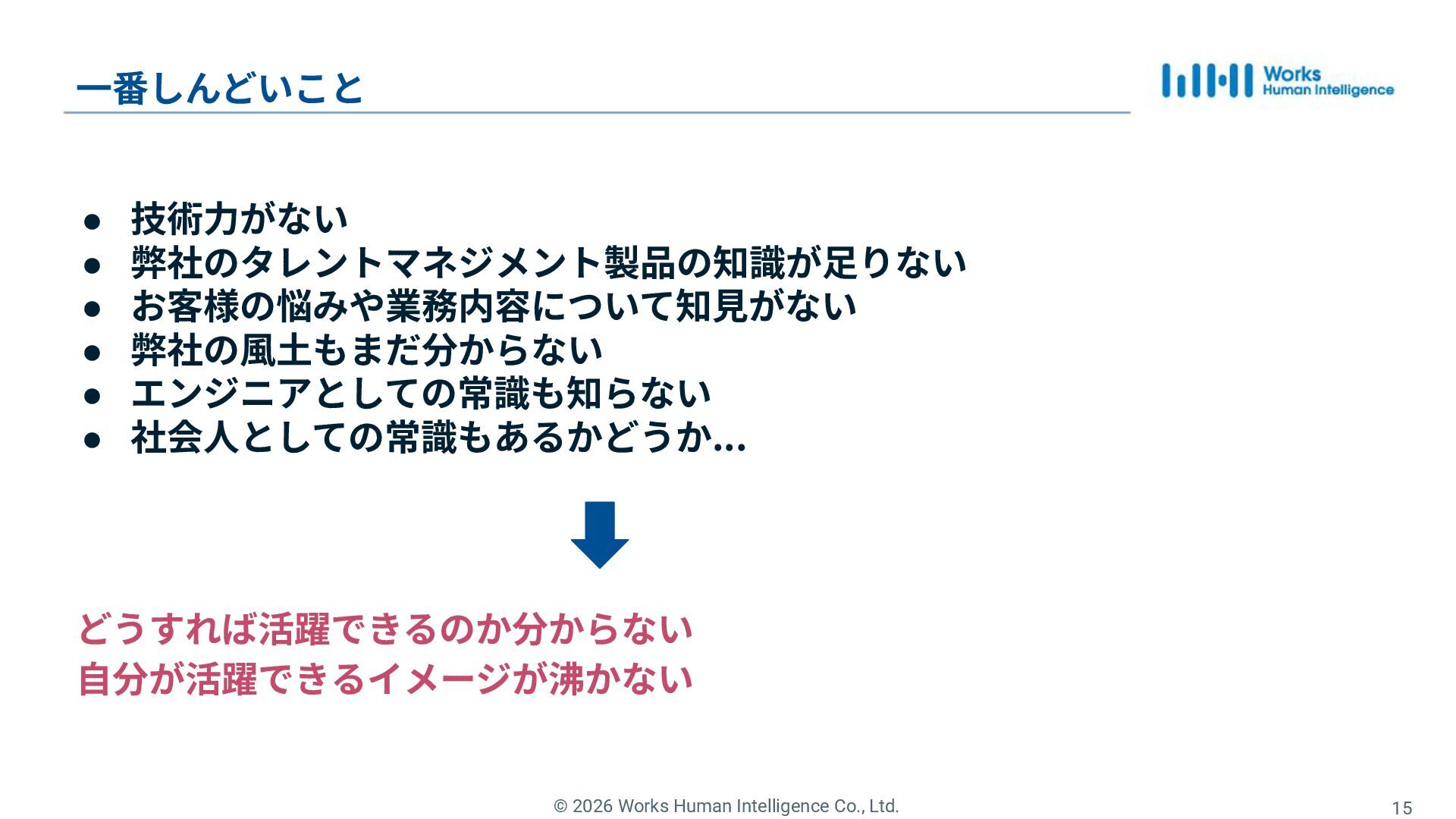 7. © 2026 Works Human Intelligence Co., Ltd. 15 ⼀番しんどいこと •