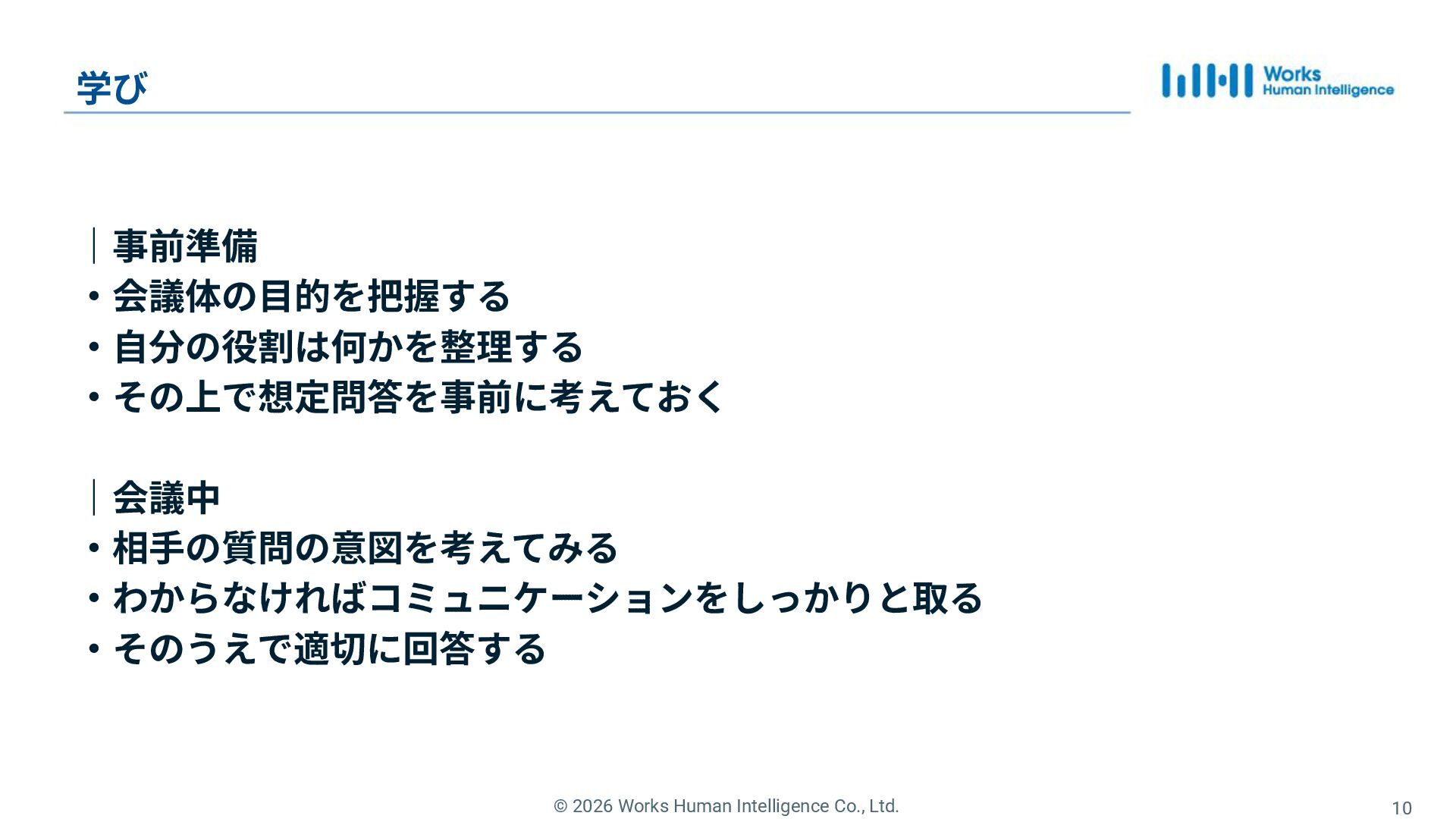 4. © 2026 Works Human Intelligence Co., Ltd. 10 学び |事前準備