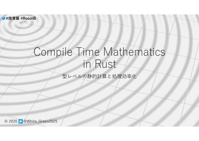 © 2020 @White_Green2525 #技育展 #RoomB Compile Time Mathematics in Rust