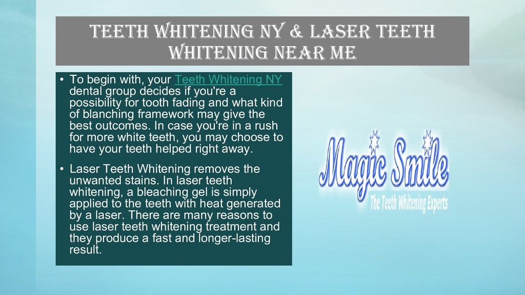 Professional Teeth Whitening( https://www.nycteethwhiteningservice.com/ )is the most popular treatment that gives you more quickly whitening to your teeth and enhances a smile in NYC. It is the latest technique in today's life. Teeth Whitening System which is an advanced, painless and effective. Any question related to teeth whitening please contact us.