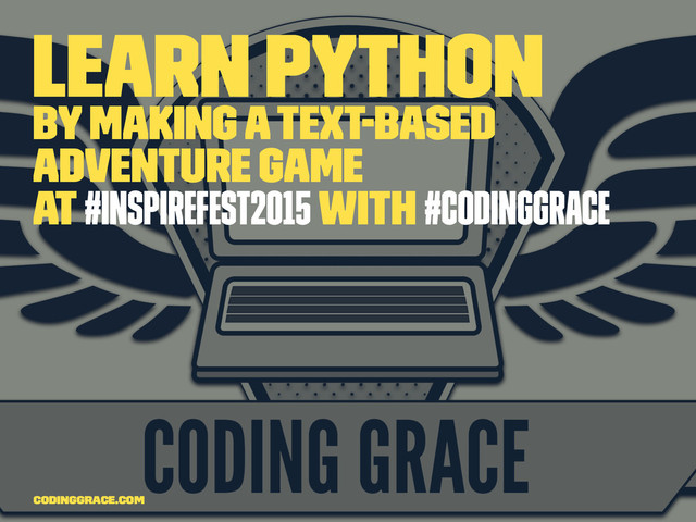 Intro slides before the workshop itself. More details of the workshop: http://www.codinggrace.com/events/learn-python-making-text-based-adventure-game-insp/48/