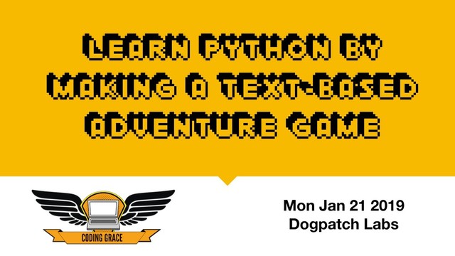 http://www.codinggrace.com/events/learn-python-making-text-based-adventure-game/100/