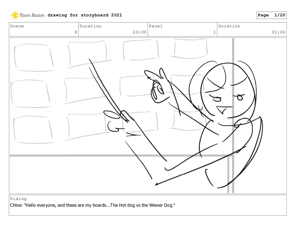 "Hello everyone, and these are my boards...The Hot dog vs the Wiener Dog." drawing for storyboard 2021 Page 1/20