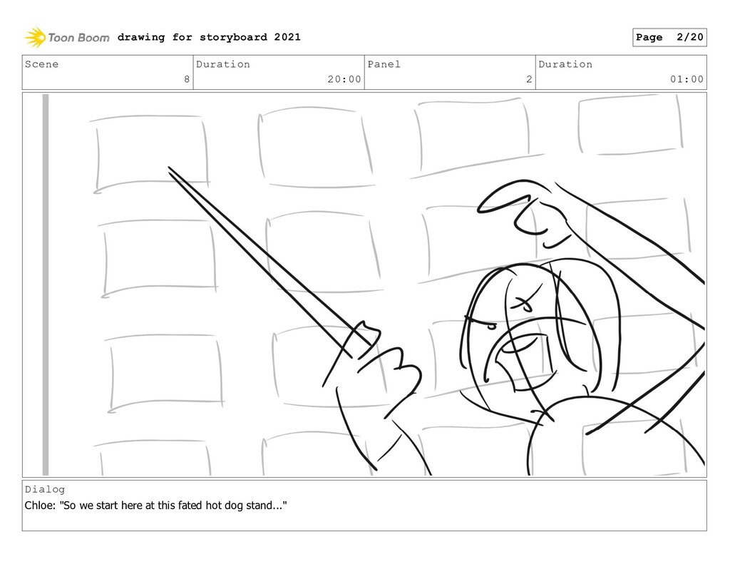 Scene 8 Duration 20:00 Panel 8 Duration 01:00 drawing for