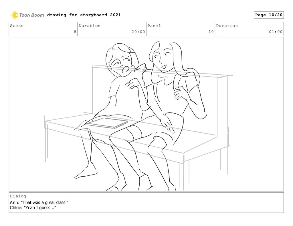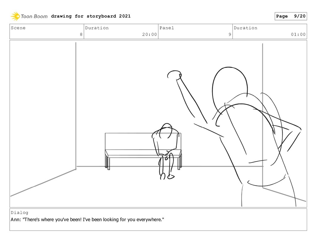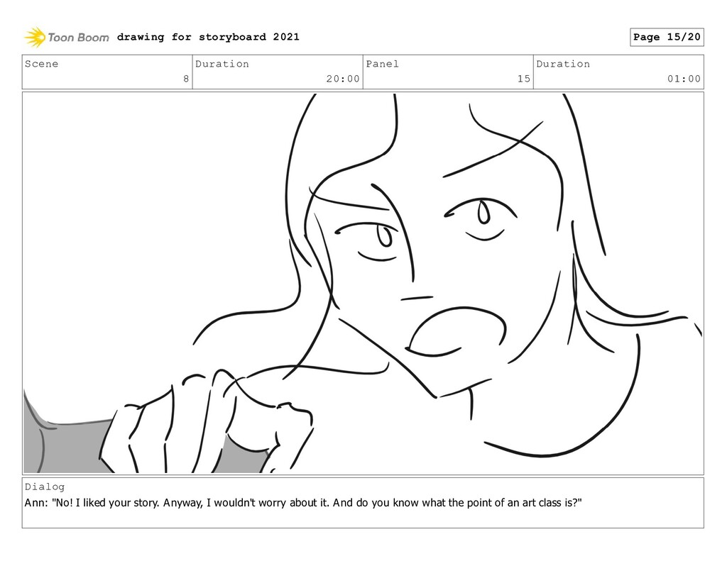 Scene 8 Duration 20:00 Panel 20 Duration 01:00 Dialog Ann: