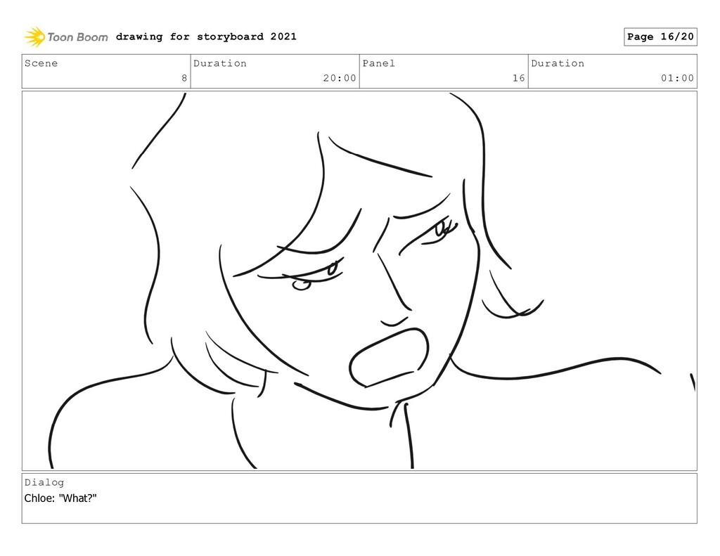 Scene 8 Duration 20:00 Panel 16 Duration 01:00 Dialog Chloe: