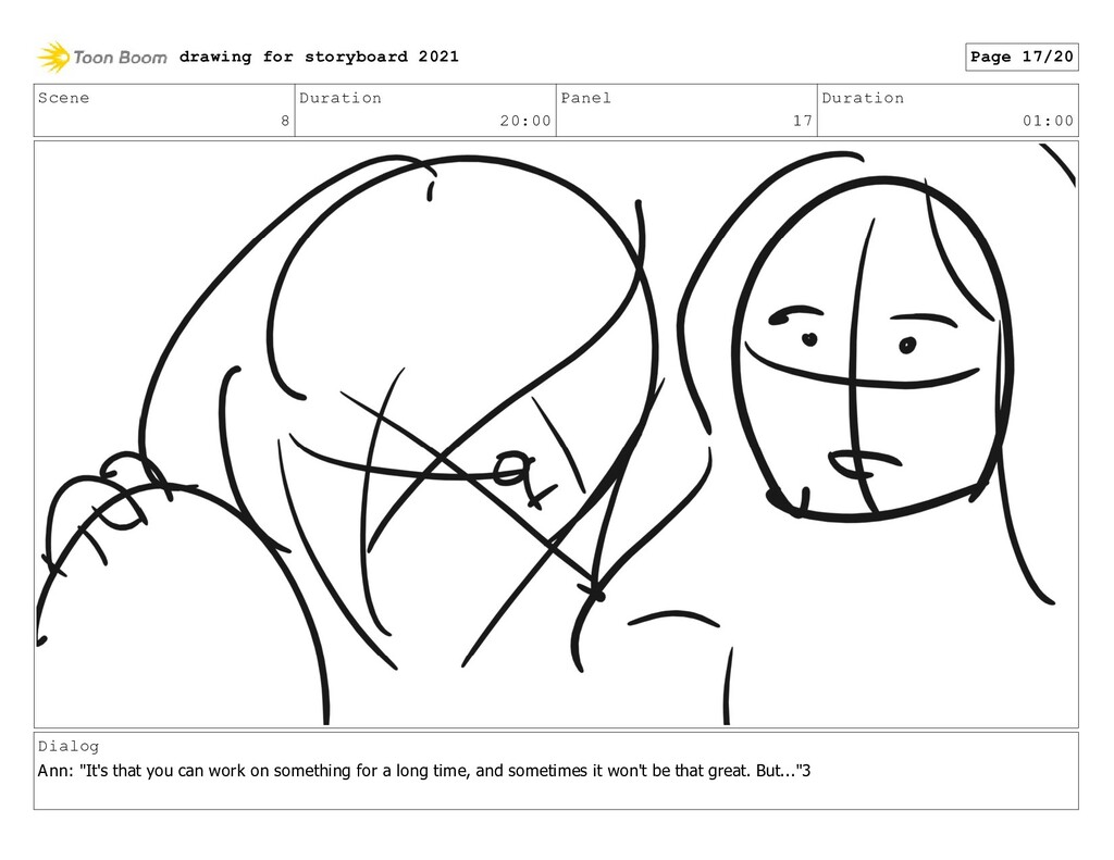 Scene 8 Duration 20:00 Panel 17 Duration 01:00 Dialog Ann: