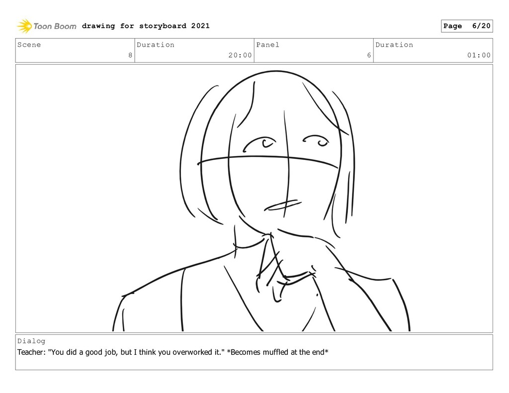 "You did a good job, but I think you overworked it." *Becomes muffled at the end* drawing for storyboard 2021 Page 6/20