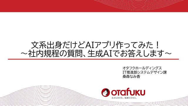 Speaker: 桑森 なみ香 氏 オタフクホールディングス株式会社 IT推進部 システムデザイン課 社内SE(システムエンジニア)