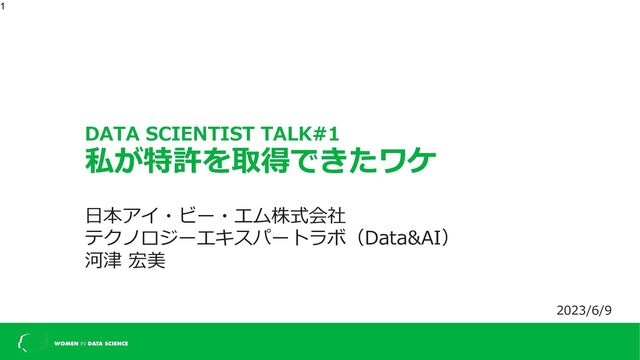 2023年6月9日開催 Women in Data Science Tokyo @ IBM DATA SCIENTIST TALK#1資料 Speaker: 河津 宏美 データサイエンティストで2児の母