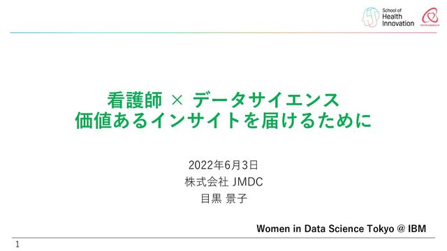 2022年6月3日開催 Women in Data Science Tokyo @ IBM DATA SCIENCE x HEALTHCARE TALK資料 Speaker: 目黒 景子 氏 看護師