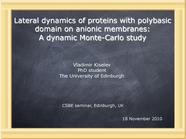 the vicinity of the PB • PB domain sequesters mainly PIP2 lipids, but not PA or PS • PB diffusion rate weakly depends on undisturbed membrane composition • In the presence of lipid gradient PB drifts in the region of higher lipid density – spontaneous clustering