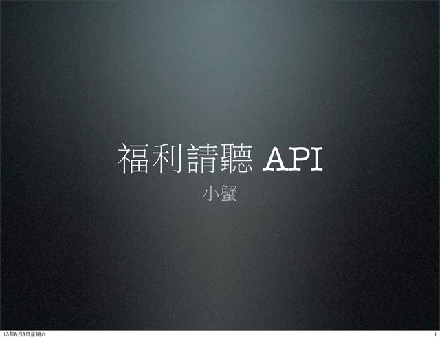 福利請聽 API 小蟹 1 13年8月3⽇日星期六