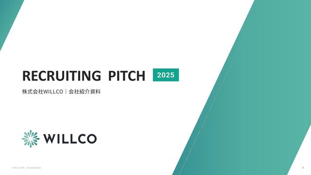 RECRUITING 2025 株式会社WILLCO|会社紹介資料 PITCH 1 © WILLCO INC.| Recruiting Pitch