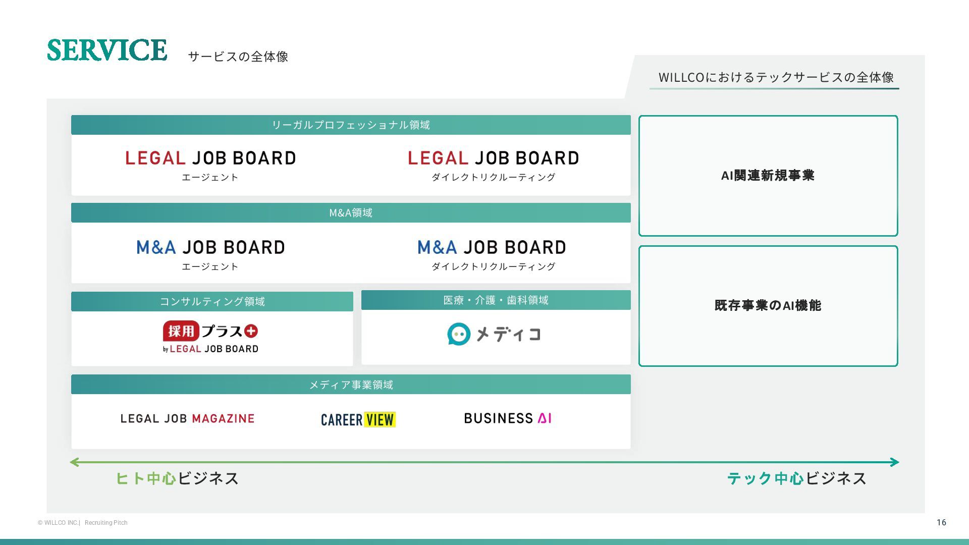16 © WILLCO INC.| Recruiting Pitch メディア事業領域 WILLCOにおけるテックサービスの全体像 サービスの全体像 ヒト中心ビジネス