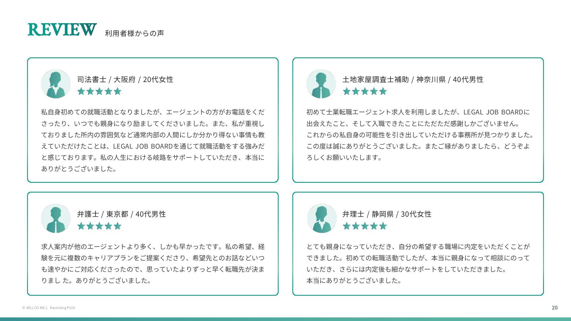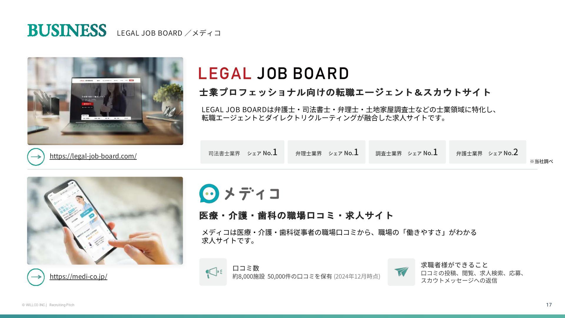 17 © WILLCO INC.| Recruiting Pitch 概要 LEGAL JOB BOARD