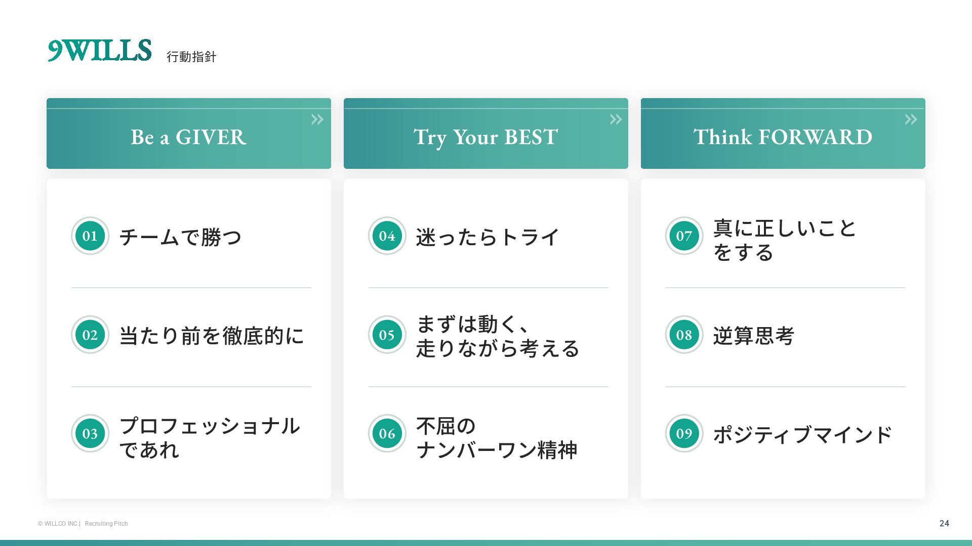 24 © WILLCO INC.| Recruiting Pitch ⾏動指針 Be a GIVER