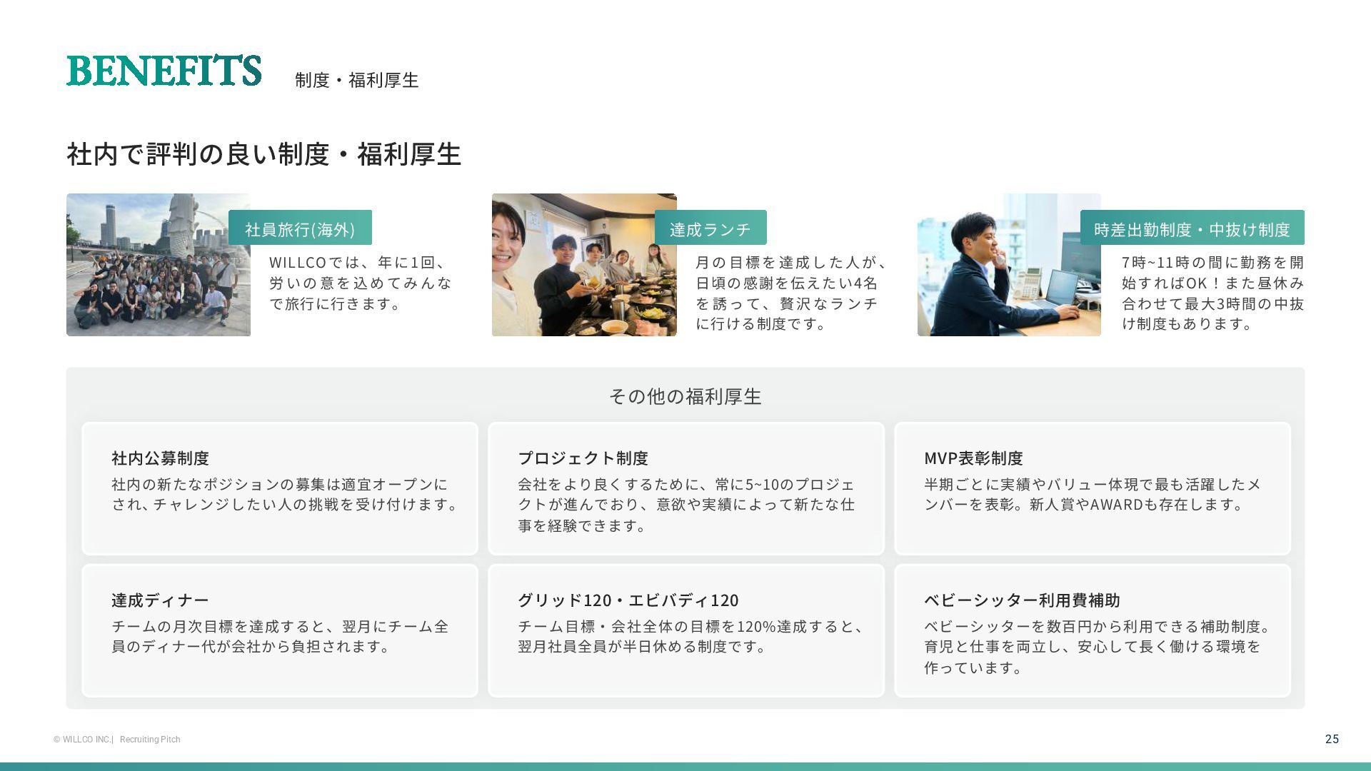 25 © WILLCO INC.| Recruiting Pitch 制度‧福利厚⽣ WILLCO で は