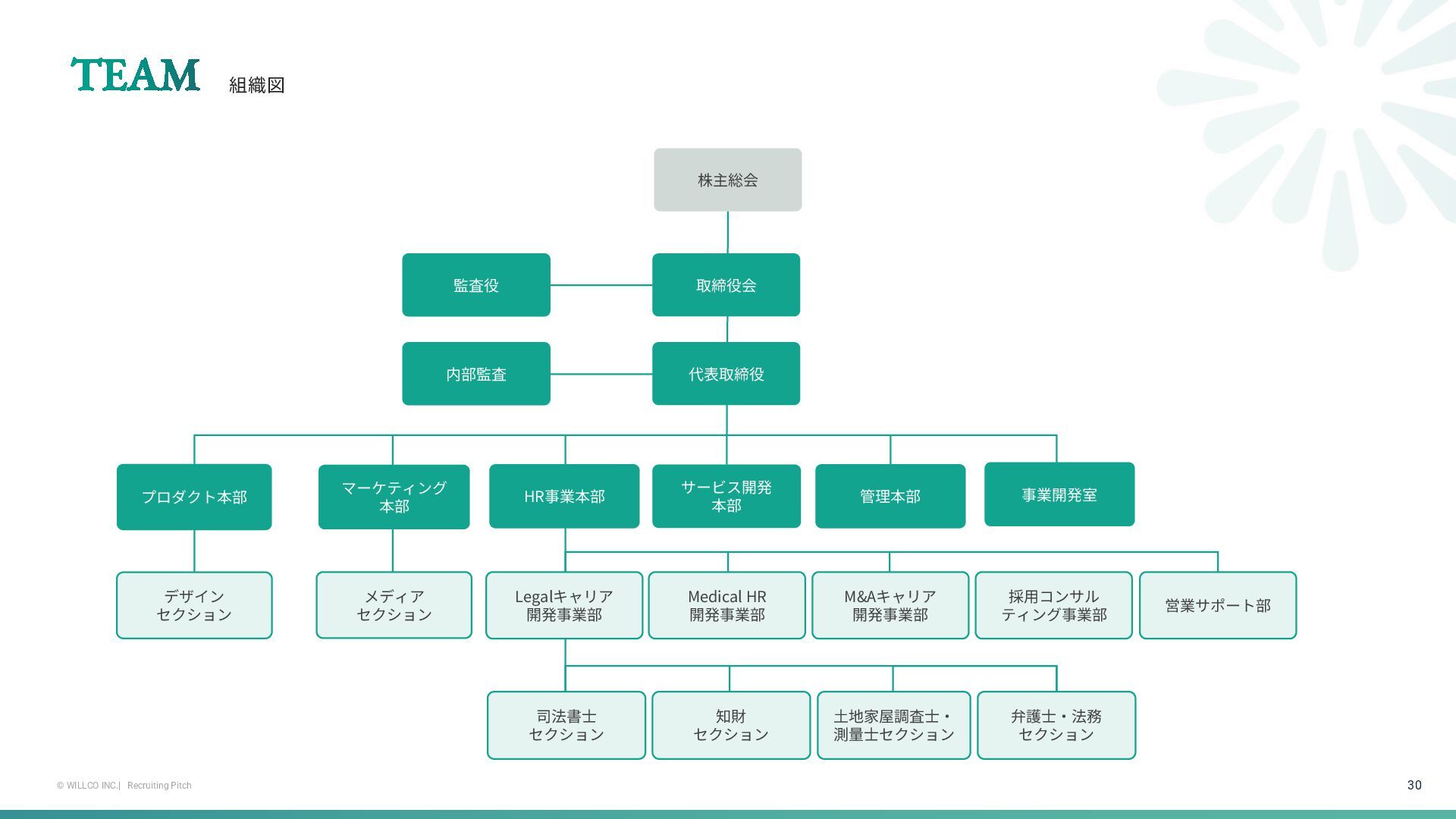 30 © WILLCO INC.| Recruiting Pitch 株主総会 取締役会 代表取締役 内部監査