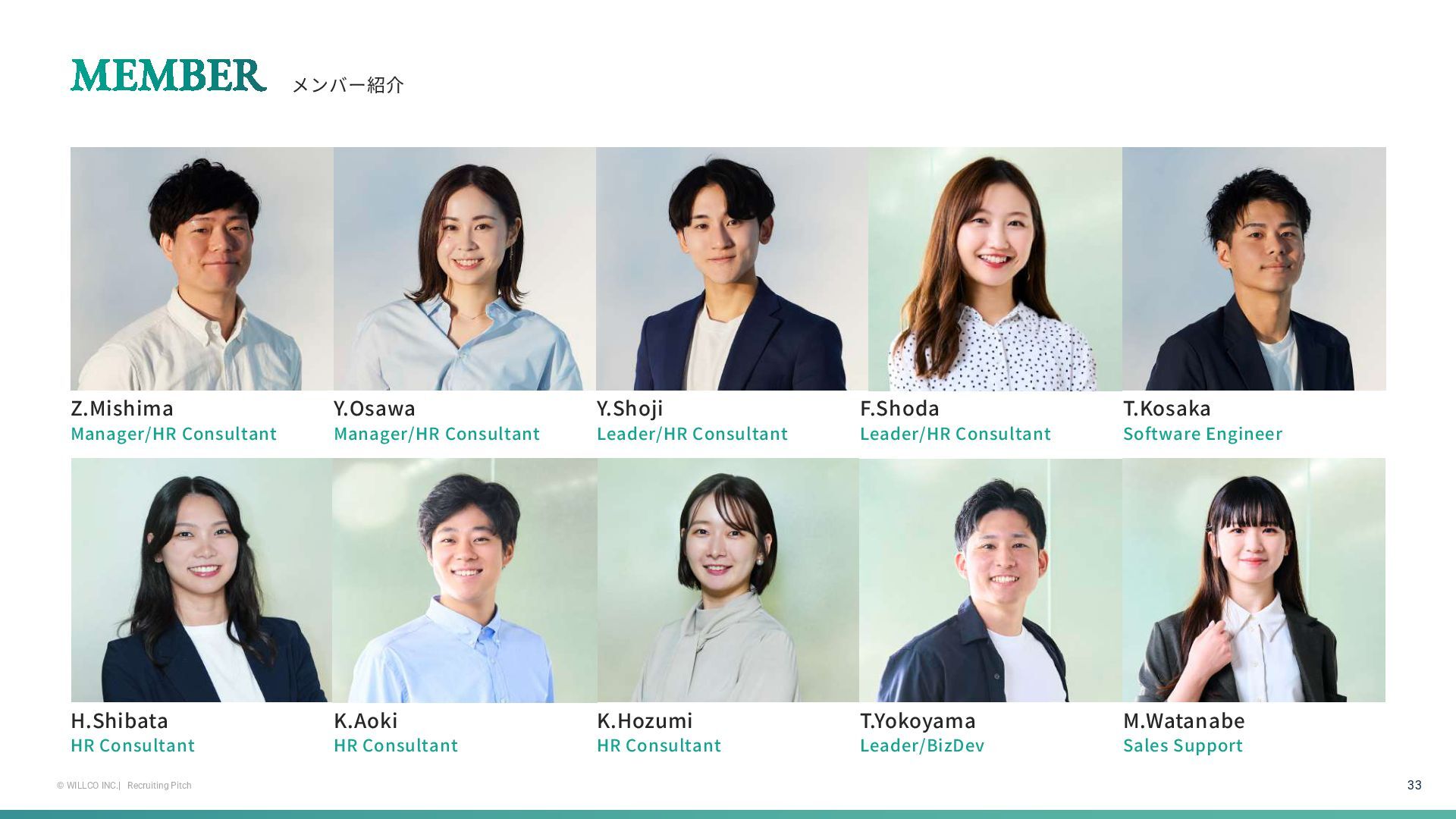 33 © WILLCO INC.| Recruiting Pitch メンバー紹介 Z.Mishima Manager/HR Consultant