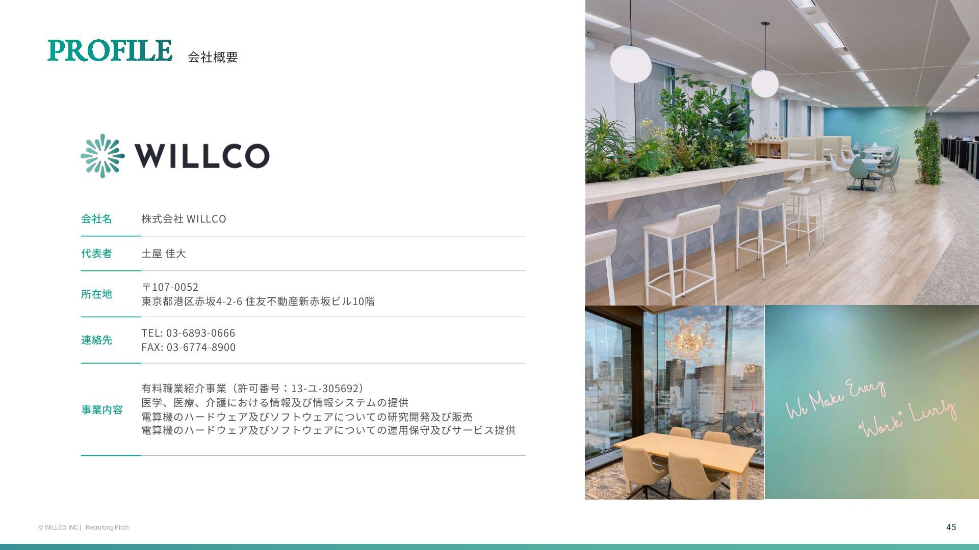 45 © WILLCO INC.| Recruiting Pitch 会社概要 会社名 株式会社 WILLCO