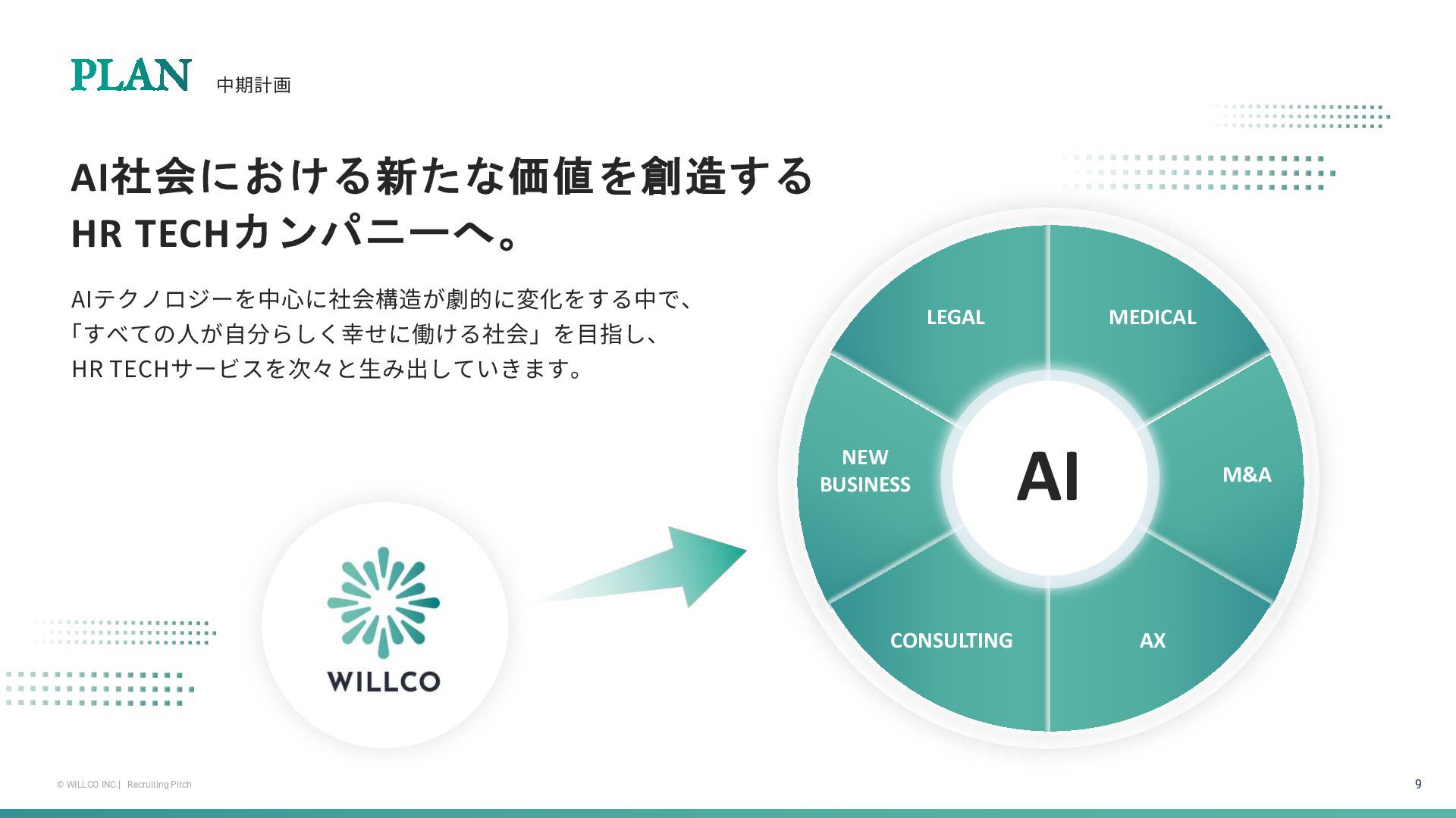 9 © WILLCO INC.| Recruiting Pitch LEGAL AI社会における新たな価値を創造する HR TECHカンパニーへ。