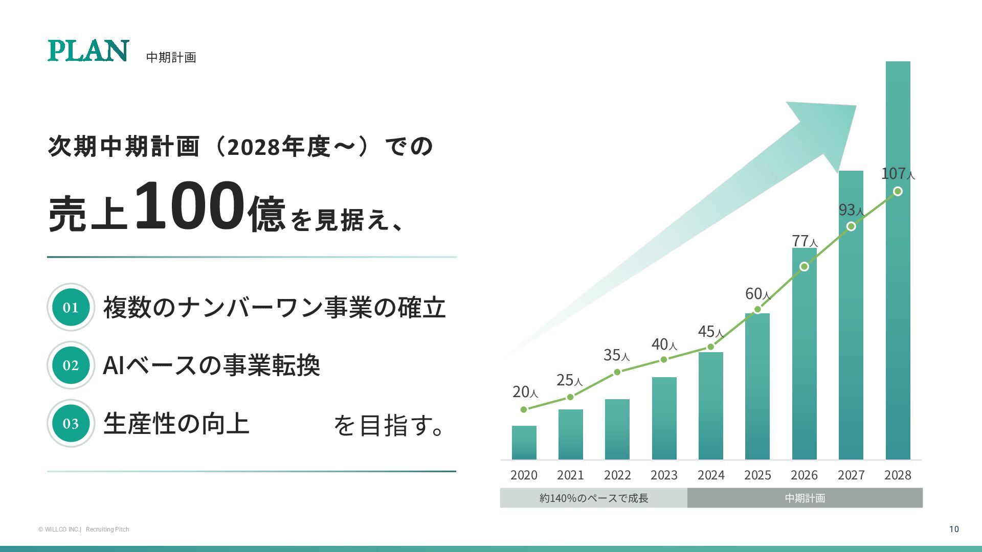 10 © WILLCO INC.| Recruiting Pitch 次期中期計画(2028年度〜)での 売上100億を見据え、 01 複数のナンバーワン事業の確⽴