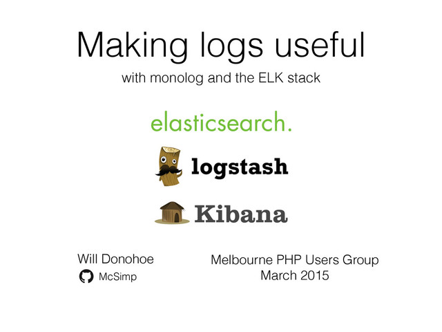 I'll also cover shipping your logs into Elasticsearch with Logstash and finding the needles in your haystack of log entries with Kibana.