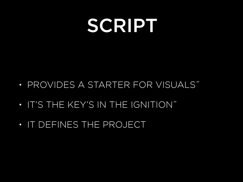 SCRIPT • PROVIDES A STARTER FOR VISUALS˝ • IT’S THE