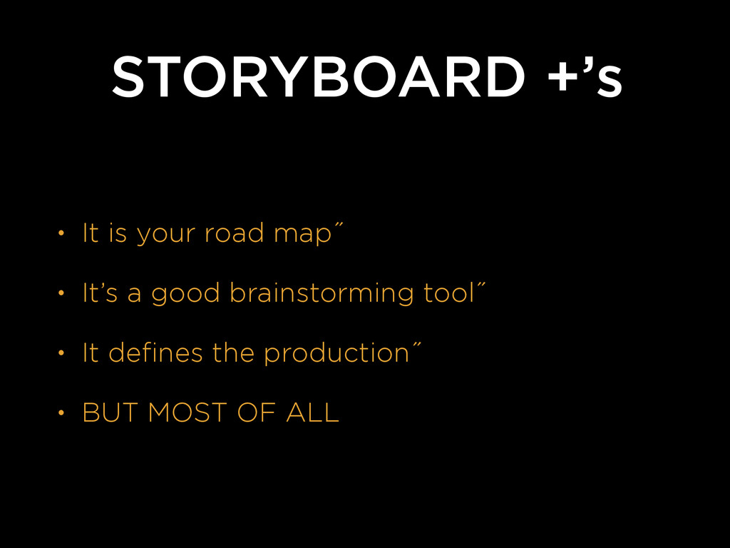 brainstorming tool˝ • It defines the production˝ • BUT MOST OF ALL STORYBOARD +’s