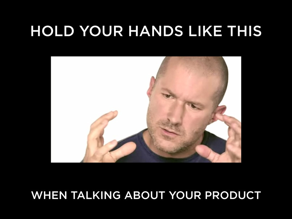 HOLD YOUR HANDS LIKE THIS WHEN TALKING ABOUT YOUR PRODUCT