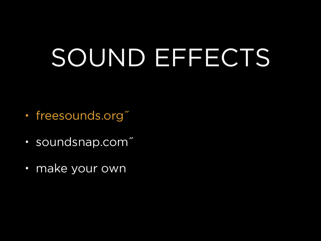 SOUND EFFECTS • freesounds.org˝ • soundsnap.com˝ • make your own
