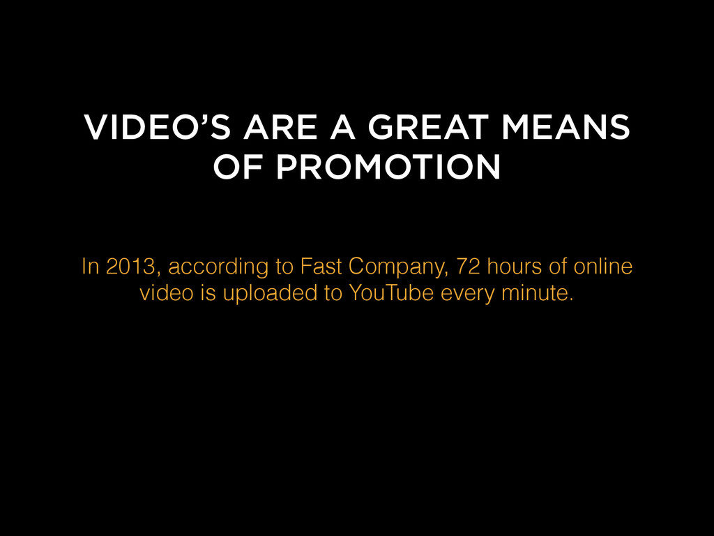 VIDEO’S ARE A GREAT MEANS OF PROMOTION In 2013, according