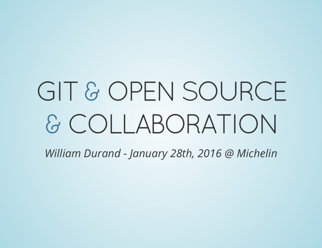 Talk on Git, Open Source, and collaborative patterns (a.k.a. workflows). This is a short-version of my "Git & GitHub & Open Source" talk I gave at LavaJUG: https://speakerdeck.com/willdurand/2015.