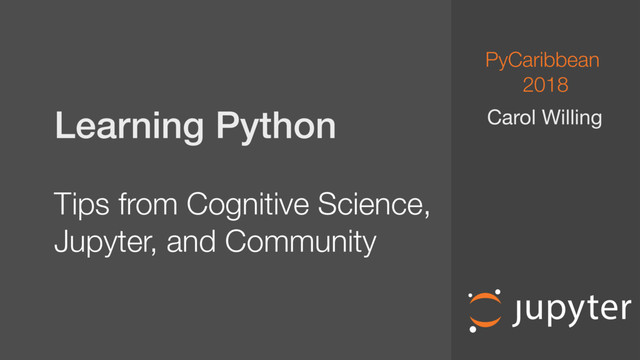 Keynote at PyCaribbean 2018. February 17, 2018. Learning has been extensively studied by Cognitive Science. Discussion about how elements of Cognitive Science, Project Jupyter, and Community influence a person's learning of the Python language.