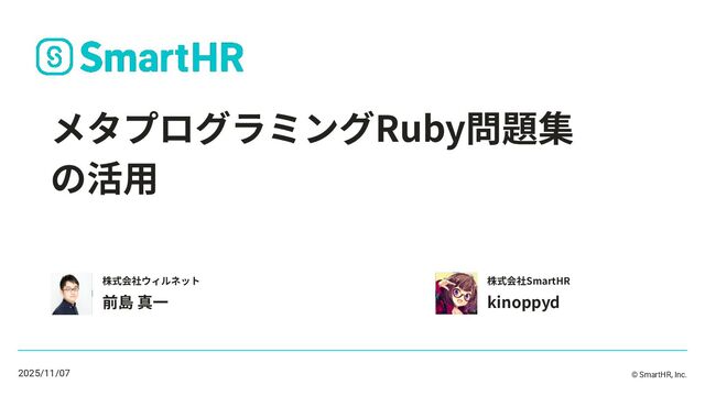 © SmartHR, Inc. メタプログラミングRuby問題集 の活⽤ 2025/11/07 前島 真⼀ 株式会社ウィルネット kinoppyd