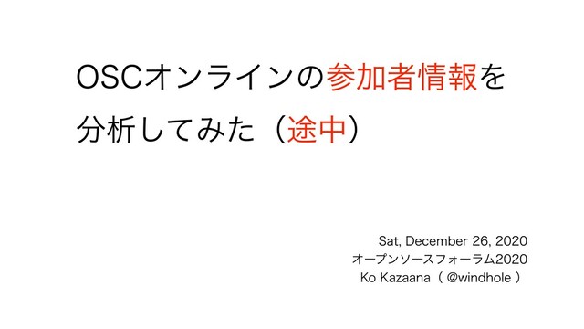 4BU %FDFNCFS ΦʔϓϯιʔεϑΥʔϥϜ ,P,B[BBOBʢ!XJOEIPMFʣ 04$ΦϯϥΠϯͷࢀՃऀใΛ ੳͯ͠Έͨʢ్தʣ