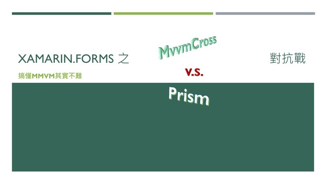 Command Object Pattern for wrapping UI Events UI(View) Navigation Mechanism invokable from ViewModel UI(Presentation) API service for ViewModel 再來就是一些ViewModel起始時能夠DI注入物件/服務的機制,才能便於寫測試