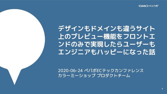 1 デザインもドメインも違うサイト 上のプレビュー機能をフロントエ ンドのみで実現したらユーザーも エンジニアもハッピーになった話 2020-06-24 ペパボECテックカンファレンス カラーミーショップ プロダクトチーム